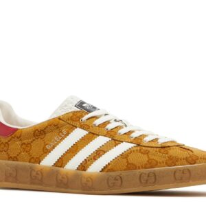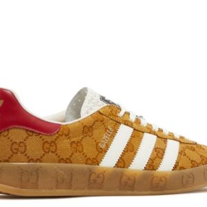 The correct name for the product you’re referring to is “Gucci x Adidas Gazelle GG Monogram Beige Brown”. This accurately describes the collaboration between Gucci and Adidas, featuring the classic Gazelle sneaker design with the iconic GG monogram in beige and brown tones.