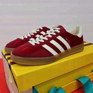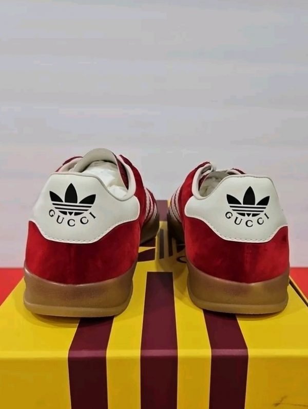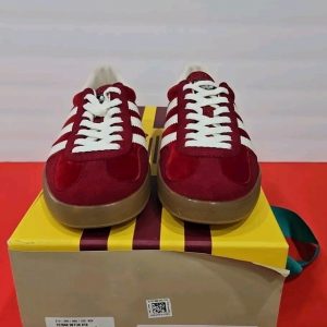 Step into luxury with the Gucci x Adidas Gazelle ‘Red’ Sneakers, a vibrant twist on the classic Gazelle silhouette. Featuring bold red suede, premium detailing, and dual branding, these sneakers seamlessly blend Adidas’ sporty heritage with Gucci’s unmistakable elegance. Designed for those who crave both style and comfort, they add a pop of color and sophistication to any outfit, perfect for making a statement in any setting.