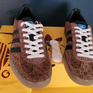 Step into luxury with the Gucci x Adidas Gazelle ‘Square GG Monogram’ Sneakers, a vibrant twist on the classic Gazelle silhouette. Featuring bold red suede, premium detailing, and dual branding, these sneakers seamlessly blend Adidas’ sporty heritage with Gucci’s unmistakable elegance. Designed for those who crave both style and comfort, they add a pop of color and sophistication to any outfit, perfect for making a statement in any setting.