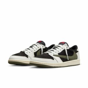 The Air Jordan 1 Retro Low OG SP ‘Travis Scott Medium Olive’ is a highly coveted sneaker that blends iconic Jordan craftsmanship with Travis Scott’s distinctive design flair. Featuring a rich medium olive colorway, this sneaker stands out with its premium suede and leather construction. The signature reverse Swoosh in black, combined with olive accents and subtle red branding details, adds a unique twist to this classic silhouette. Whether you’re a sneakerhead or a Travis Scott fan, this collaboration is a perfect blend of style, comfort, and street-ready aesthetics, making it a must-have in any collection.