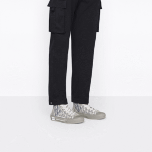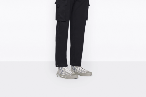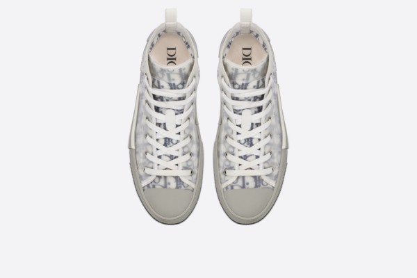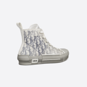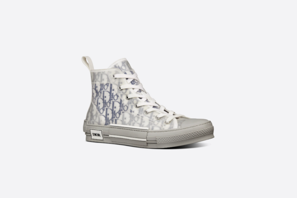 The B23 League high-top sneaker is set apart by its layering of transparent paneling and white and black Dior Oblique canvas. Essential details, such as eyelets and a lace-up front, a white rubber sole, a rounded and reinforced toe as well as a rear tab recall the codes of the classic high-top style. The sneaker is further enhanced with contrasting details on the sides, including a Dior signature, and pairs easily with any casual outfit.