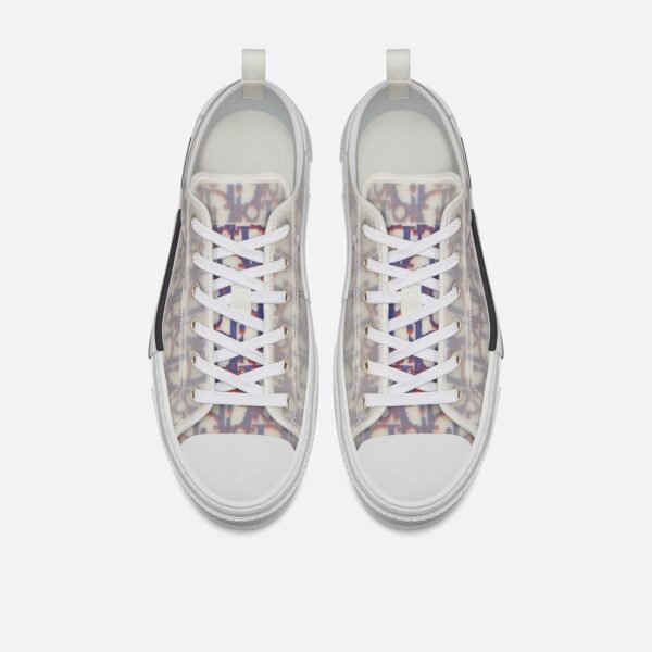 The B23 League low-top sneaker is set apart by its layering of transparent paneling and white and black Dior Oblique canvas. Essential details, such as eyelets and a lace-up front, a white and beige rubber sole, a rounded and reinforced toe as well as a rear tab recall the codes of the classic low-top style. The sneaker is further enhanced by contrasting details on the sides, including a Dior signature, and will pair easily with any casual outfit.