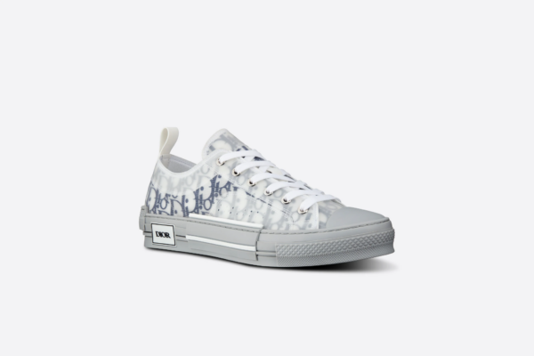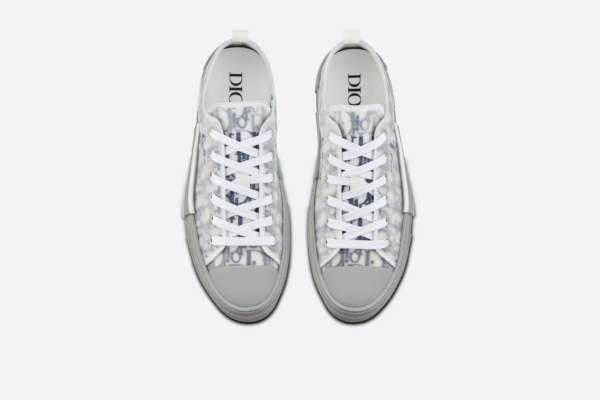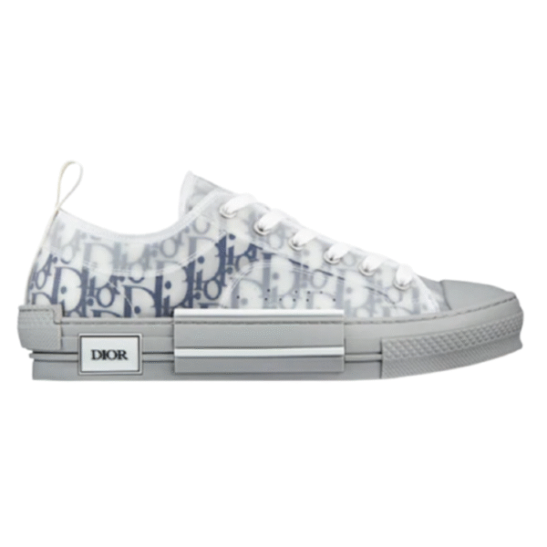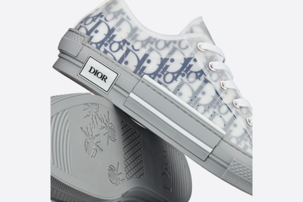 The B23 League low-top sneaker is set apart by its layering of transparent paneling and white and black Dior Oblique canvas. Essential details, such as eyelets and a lace-up front, a white and beige rubber sole, a rounded and reinforced toe as well as a rear tab recall the codes of the classic low-top style. The sneaker is further enhanced by contrasting details on the sides, including a Dior signature, and will pair easily with any casual outfit.