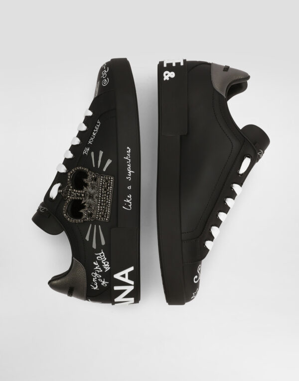 Digital-print Portofino calfskin sneakers with embroidery, studs and crown patch embellishment: