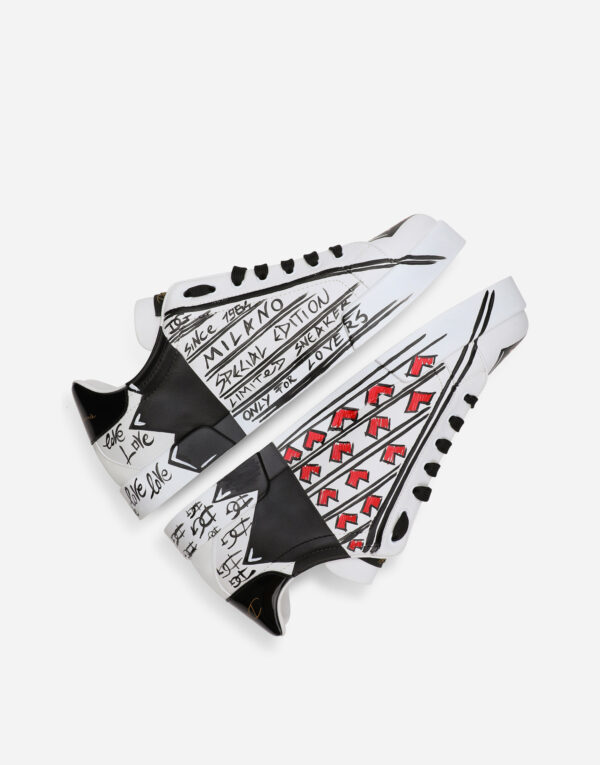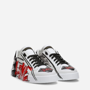 Portofino line sneakers in calfskin nappa with Dolce&Gabbana logo on the heel.