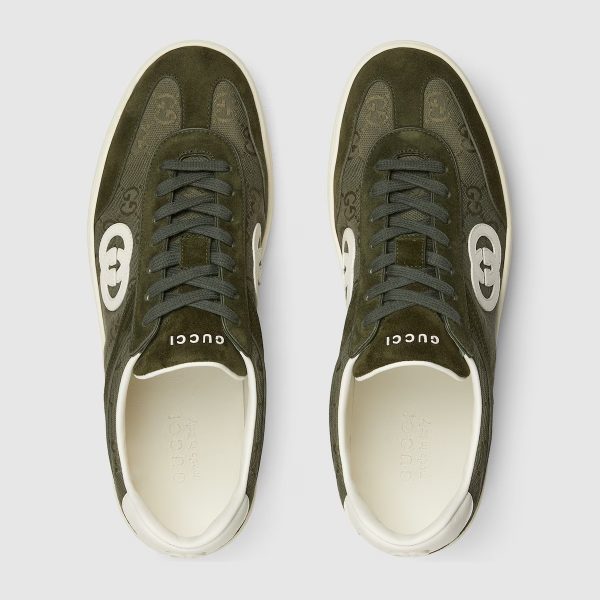 Gucci Men’s G75 Sneaker Dark Green Canvas and Suede