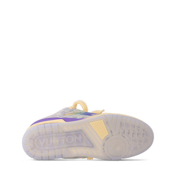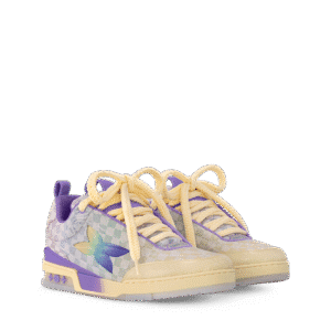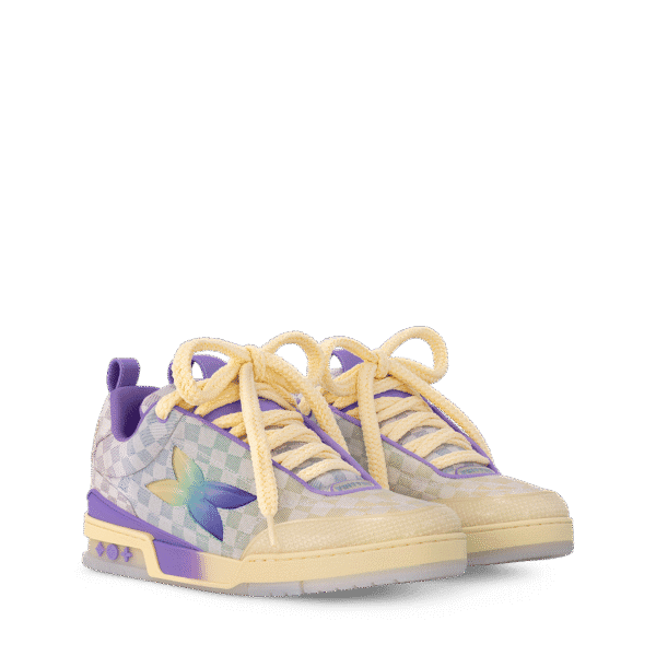 This colorful interpretation of the LV Skate sneaker comes in gradient Damier denim, reflecting a major theme of the season’s men’s collection. Key details of this design, which references Nineties’ skate shoes, are multicolored cotton laces and a gradient Monogram Flower on the side. The rubber outsole is signed with three Monogram Flowers.