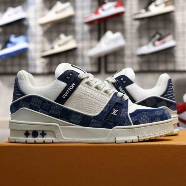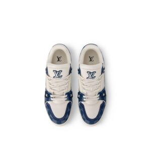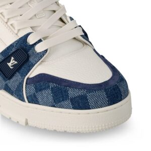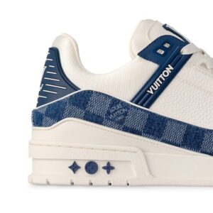 The LV Trainer sneaker is reinterpreted this season in grained calf leather and shimmering Swarovski™ crystals for an eye-catching, two-tone look. Originally designed by Virgil Abloh, this cult model was inspired by vintage basketball sneakers and features an elaborately constructed upper. It is finished with a technical rubber outsole.