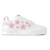 This refined iteration of the iconic LV Trainer sneaker is crafted from soft calf leather embossed with the historic Damier pattern. Leather laces with metal tips further enhance this model, which also features contrasting LV Initials and Vuitton signatures. The technical rubber outsole is decorated with three Monogram Flowers.