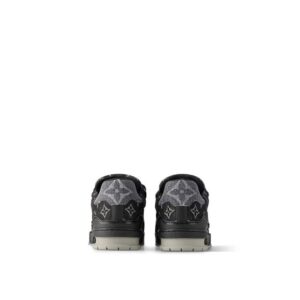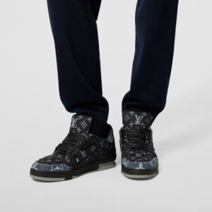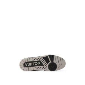 Crafted from supple white calf leather, this version of the LV Trainer sneaker is part of the season’s Rainbow ready-to-wear capsule collection. This cult model was designed by Louis Vuitton Artistic Director Virgil Abloh and inspired by vintage basketball sneakers. Its elaborately constructed upper, which features rubber LV and Vuitton signatures, takes seven hours to stitch.