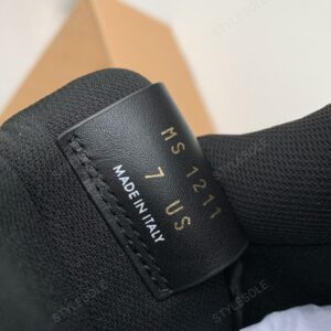 In total, Virgil Abloh designed 47 pairs of the Nike “Air Force 1” for the Louis Vuitton show in collaboration with Nike. To distinguish them from the original Nike “Air Force 1″, the sneakers were made with materials employed in Abloh’s Louis Vuitton men’s collections, and were styled with his signature quotation marks, echoing the written graphics Abloh used to adorn the shoes. The individual styles designed for the show were made by Louis Vuitton in its shoe atelier in Fiesso d’Artico, Venice. In January 2022, the first installment of the Louis Vuitton x Nike “Air Force 1” by Virgil Abloh came to market through Sotheby’s exclusively at auction.