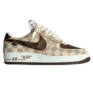 Embrace a fusion of luxury and street style with these LV Damier Canvas-inspired Trainers. They feature the iconic checkered pattern from Louis Vuitton paired with the timeless Nike Air Force 1 silhouette. The sleek design, rich brown tones, and LV monogram details exude a bold yet refined aesthetic that stands out in any crowd. Perfect for those seeking comfort without compromising style, these sneakers are a must-have for fashion-forward individuals.