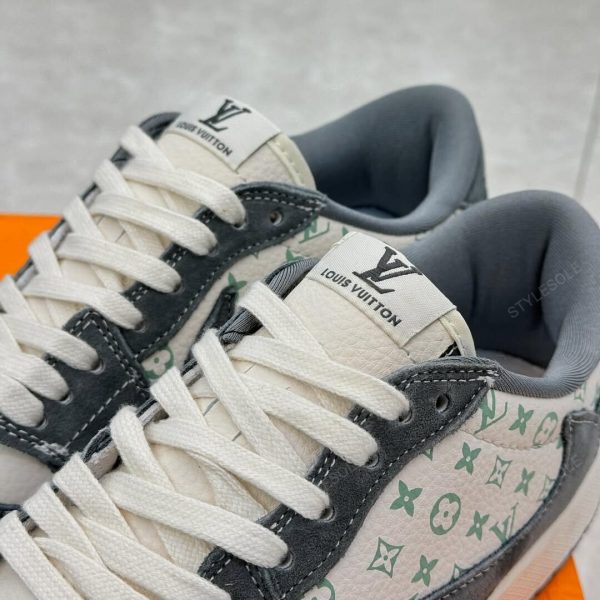 Crafted for those who command attention, this custom AJ1 Low pairs premium grey suede overlays with soft ivory leather and a fresh pop of Louis Vuitton’s green monogram canvas. The blend of texture, tone, and iconic branding delivers a sneaker that’s bold yet elegant.