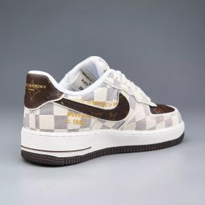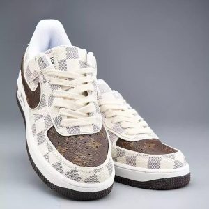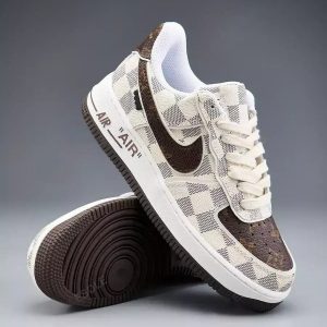 This sneaker doesn’t whisper luxury—it shouts it. A one-of-a-kind mashup of Off-White energy, Nike legacy, and Louis Vuitton prestige, this Air Force 1 custom is decked out in LV’s iconic Damier checkerboard canvas, paired with rich chocolate monogram overlays for extra depth.