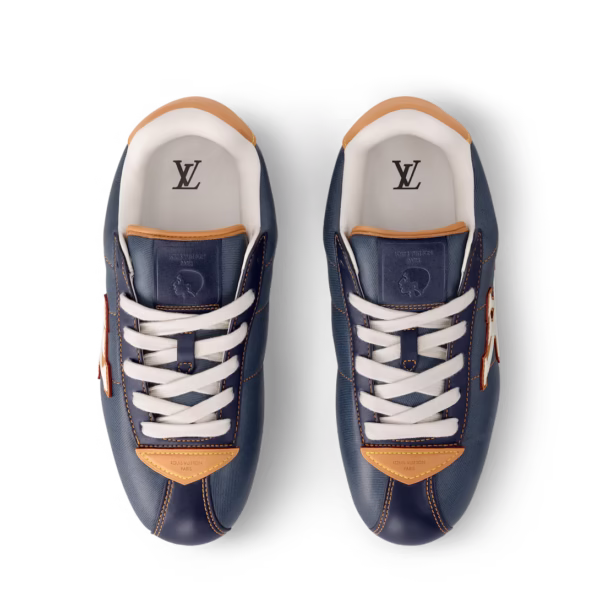 This edition of the LV BUTTERSOFT Sneaker comes in lambskin and calf leather with a denim effect. Designed by Men’s Creative Director Pharrell Williams, this model takes its name from the ultra-soft feel of the leather, which is enhanced by the padded upper, expertly stitched by Louis Vuitton artisans. The upper is complemented by natural leather trim, inspired by the leather goods, an LV Initials signature and embossed motifs of Pharrell Williams’ profile and a lobster, referencing the Fall-Winter 2025 men’s show.