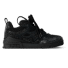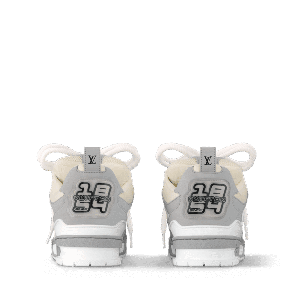 This colorblock version of the LV Skate sneaker comes in a mix of nubuck calf leather and technical mesh. Inspired by Nineties’ skate shoes, this model is notable for its thick double laces and exaggerated, padded collar and tongue. It has an oversized Monogram Flower on the side and an LV Vuitton logo on the tongue.