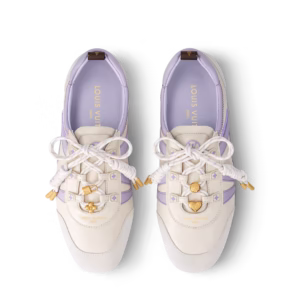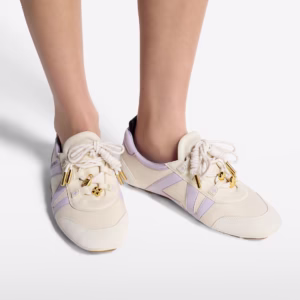 This version of the LV Sneakerina sneaker ballerina comes in a mix of materials, including lambskin and suede calf leather. This innovative design combines the comfort of a sneaker with the lightness of a ballet pump, and features an ultra-flexible TPU outsole. Key details include gold-toned lace accessories and an LV signature on the side.