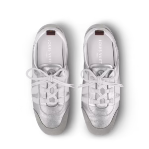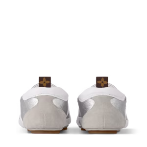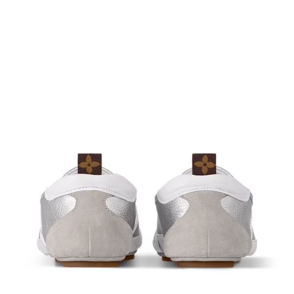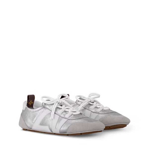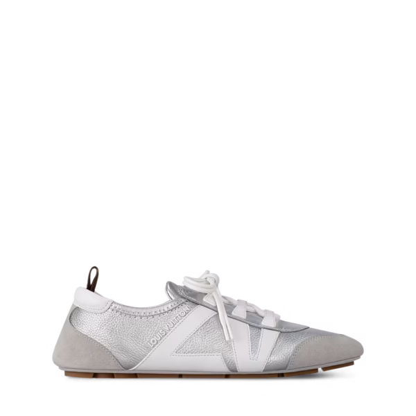 The LV Sneakerina is a fashion-forward style combining the qualities of a sneaker and a ballerina. This version comes in metallic grained calf leather with contrasting trim, including an LV signature on the side. Stylish and versatile, this model features a sacchetto construction, a testament to Louis Vuitton craftsmanship, and TPU outsole for lightness and suppleness.