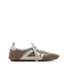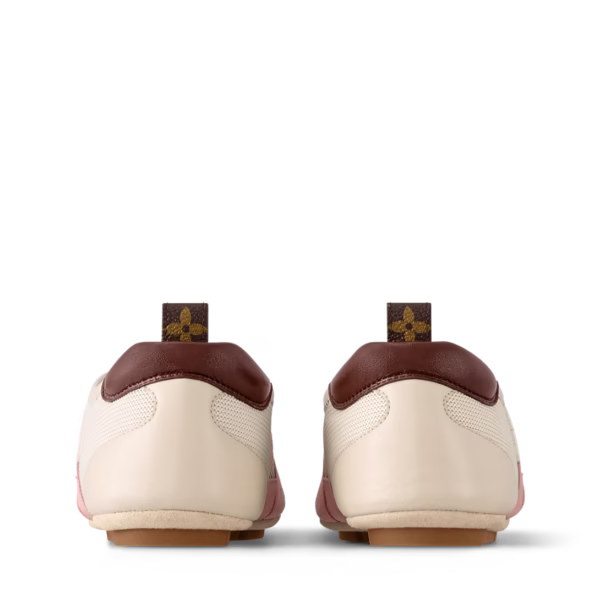 The LV Sneakerina sneaker ballerina combines an upper crafted from a mix of materials with an ultra-flexible TPU outsole. This innovative design offers the comfort of a sneaker with the lightness of a ballet pump. Key details include prominent LV and Louis Vuitton signatures on the side and a back loop in Monogram canvas.