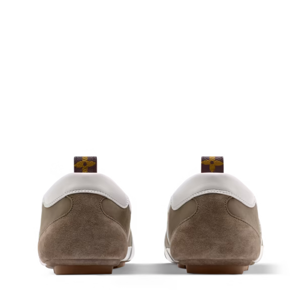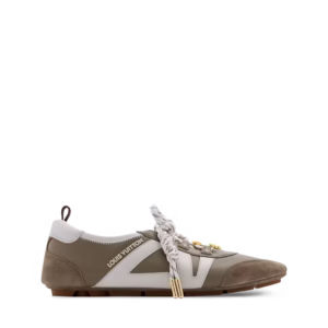 This version of the LV Sneakerina sneaker ballerina comes in a mix of materials, including lambskin and suede calf leather. This innovative design combines the comfort of a sneaker with the lightness of a ballet pump, and features an ultra-flexible TPU outsole. Key details include gold-toned lace accessories and an LV signature on the side.