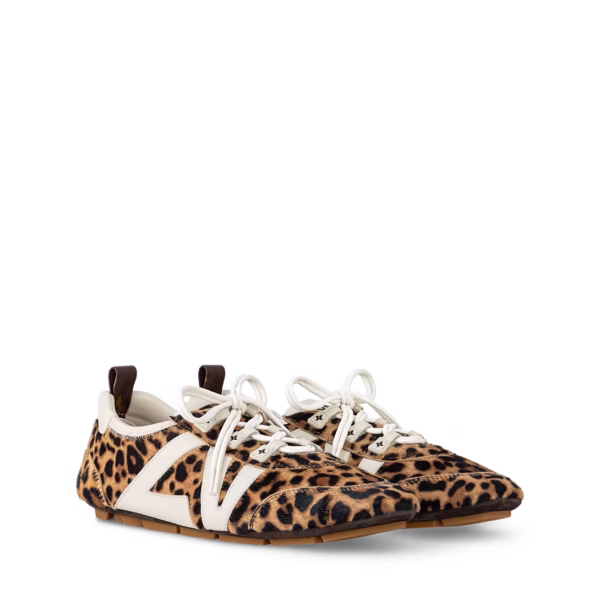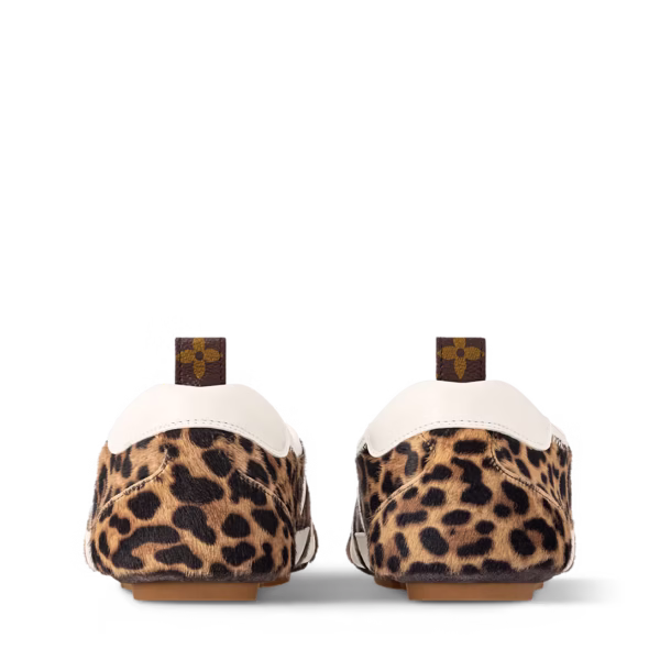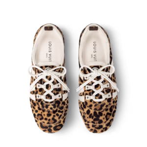 A graceful blend of sneaker and ballerina styles, the LV Sneakerina is crafted from calf hair leather with a striking leopard print. The design is accented with refined leather details, including an oversized LV logo on the side.