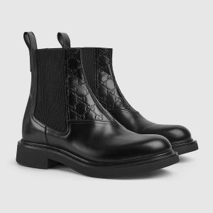 Men’s Ankle Boot With GG Detail Black Leather