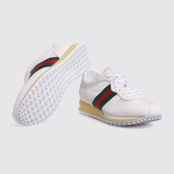 - Tongue with 3D Gucci script logo and Interlocking G, created with a high-frequency embossing process