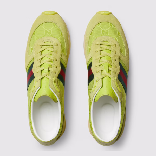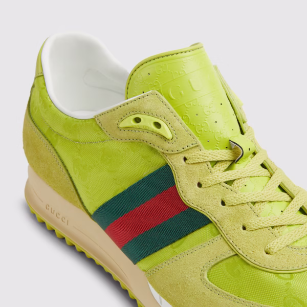 • Tongue with 3D Gucci script logo and Interlocking G, created with a high-frequency embossing process