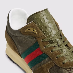- Tongue with 3D Gucci script logo and Interlocking G, created with a high-frequency embossing process