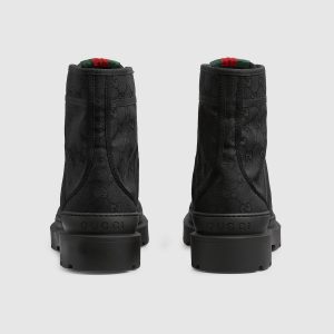 This pair of men’s ankle boots is crafted in the emblematic GG canvas, while the construction is defined by a rubber lug sole. This versatile yet unique design highlights the House’s monogram in a subtle and signature way