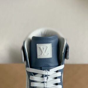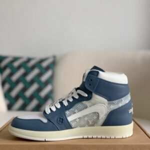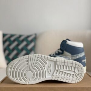 Elevate your sneaker game with the LV x Air Jordan 1 in Slate Blue, a luxurious fusion of streetwear heritage and high fashion. Crafted with premium leather overlays in a cool slate blue tone and signature Louis Vuitton monogram canvas, this pair embodies sophistication and edge. The reversed white Swoosh, creamy off-white sole, and high-top silhouette add timeless character while ensuring everyday comfort. Whether you’re making a statement on the streets or dressing up a casual fit, this sneaker defines modern luxury with bold attitude.