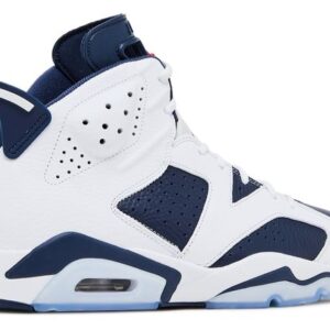 Honoring the uniforms Team USA wore during the 2000 Sydney Olympics, the 2024 version of the Air Jordan 6 Retro ‘Olympic’ sports a navy tumbled leather upper with contrasting white overlays. Red Jumpman logos appear on the lace guard and the back of the heel, completing the red, white and blue colorway. Traditional details like the molded two-hole tongue, lace locks and a spoiler-like pull tab remain intact. A lightweight foam midsole equips an exposed Air-sole heel unit, anchored by a see-through rubber outsole for steady traction on and off the court.