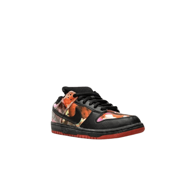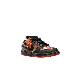 Released in 2005, this bold colourway of the Nike SB Dunk Low was designed by artist Pushead – known for his artwork on Metallica album covers and Thrasher tees. The pair is crafted from black leather, while the paint splatter print decorates the rest in red, pink, and green hues. Underneath, a rubber sole brings comfort to the design.