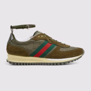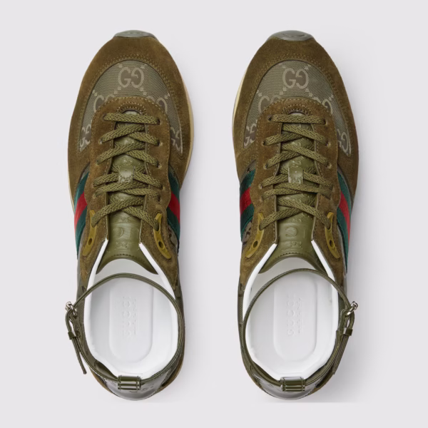 • Tongue with 3D Gucci script logo and Interlocking G, created with a high-frequency embossing process