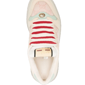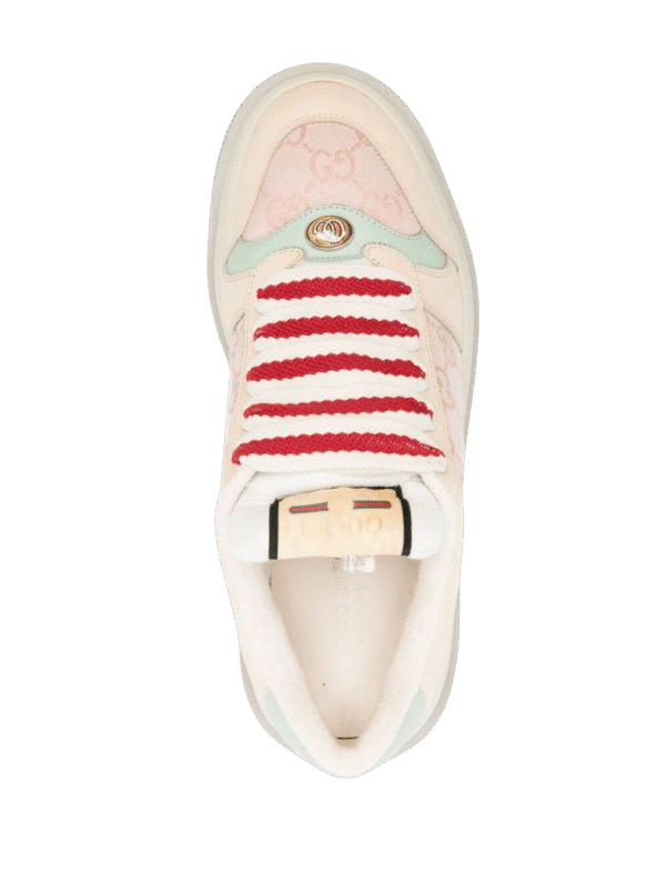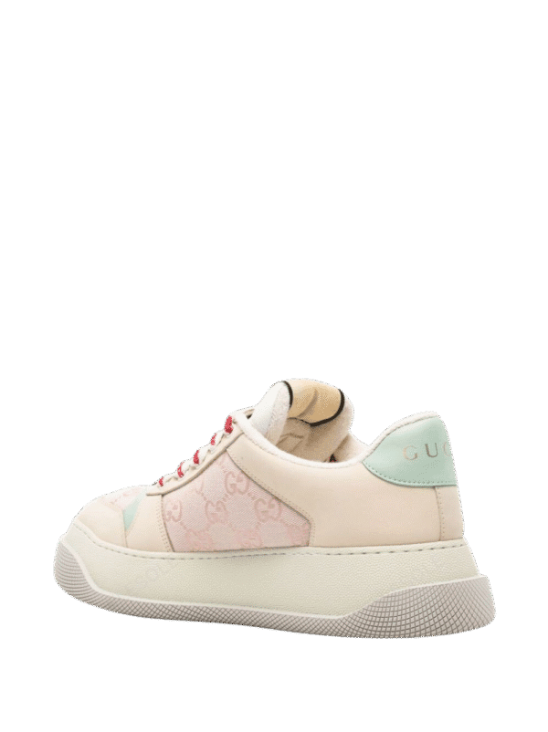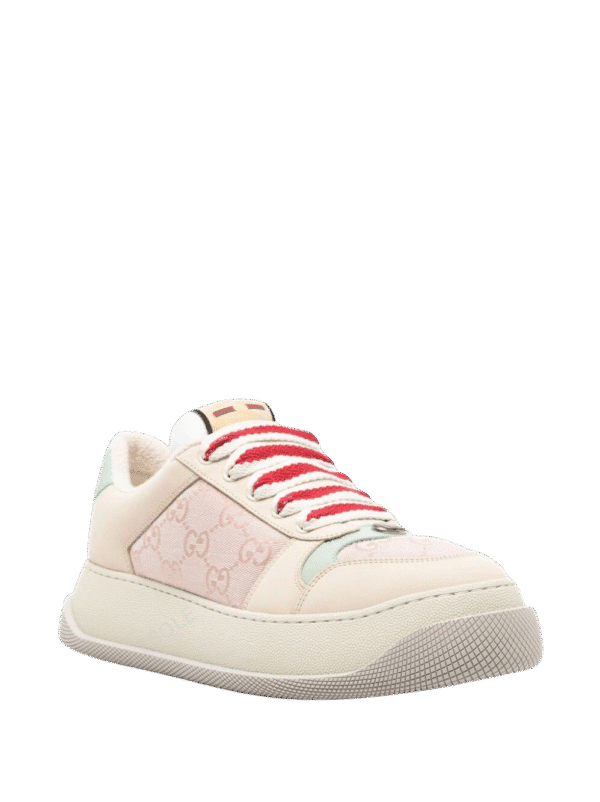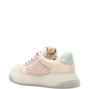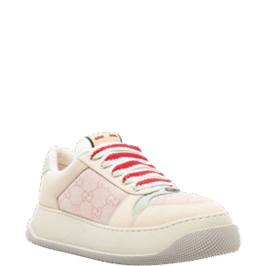 Originally created in the ’30s, the iconic GG motif pays homage to founder Guccio Gucci and is now a hallmark within the house’s collections. It’s spotlighted on the pink canvas panel of these chunky Screener sneakers and framed with pastel accents.